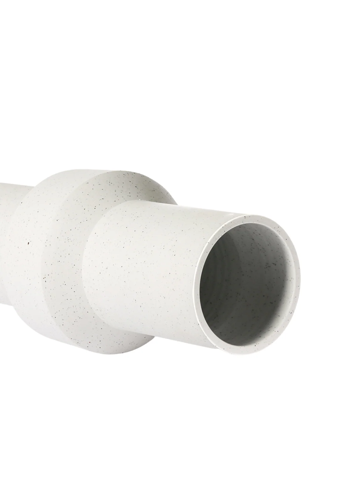 A handmade white speckled vase made of clay.