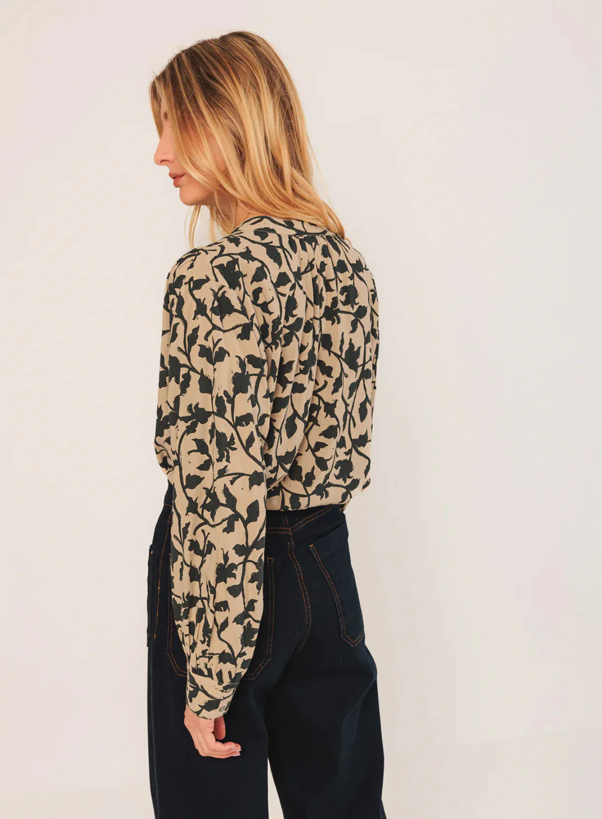 Mao collar shirt with shoulder support that gives volume to the garment. A half-placket closure allows you to wear it both open and closed, plus it's made of a super lightweight sustainable viscose fabric.