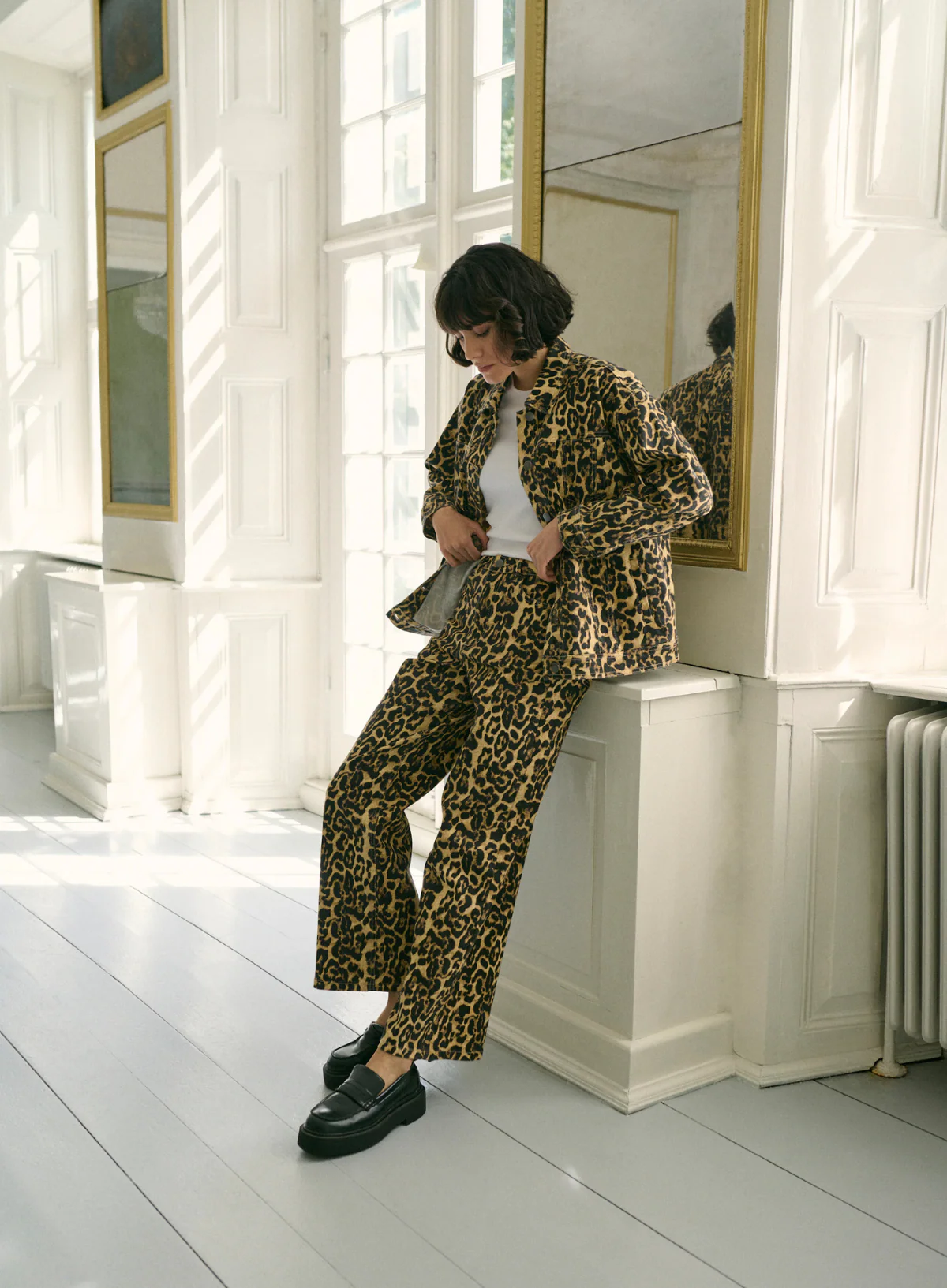 Gorgeous leopard print oversized denim jacket.