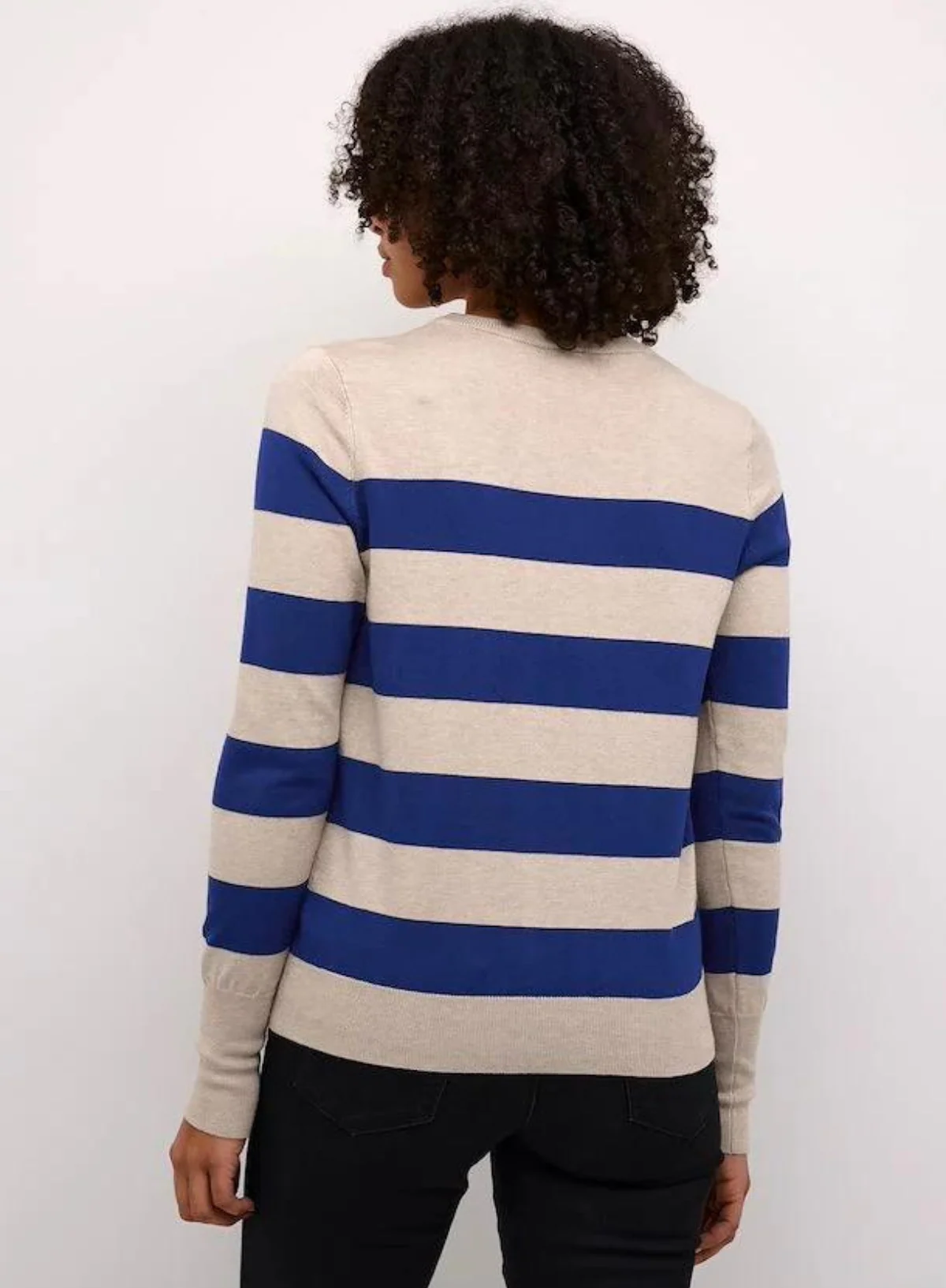 Kaffe Lizza Striped Knit Pullover in Blue/Feather Gray