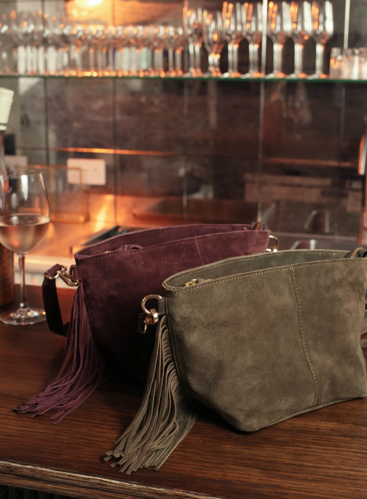 - The Kingston Tassle Cross Body Bag in olive offers a distinctive blend of luxe and bohemian style with a supersoft suede leather and detailed fringe.
