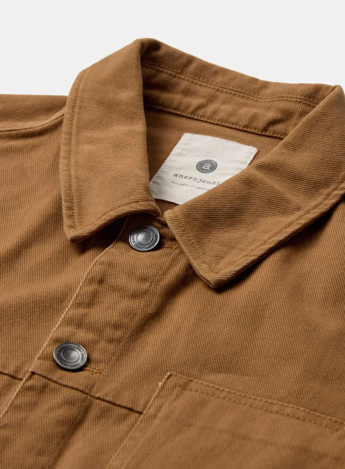 The Oscar Twill Overshirt in Golden Brown from Anerkjendt combines classic style with practical design.