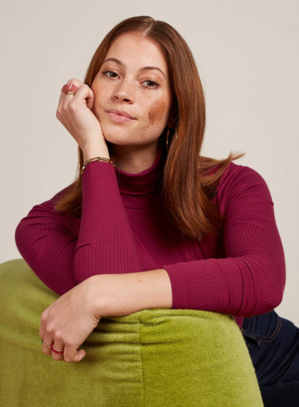 King Louie Rollneck Top Uni Rib in Beaujolais Red